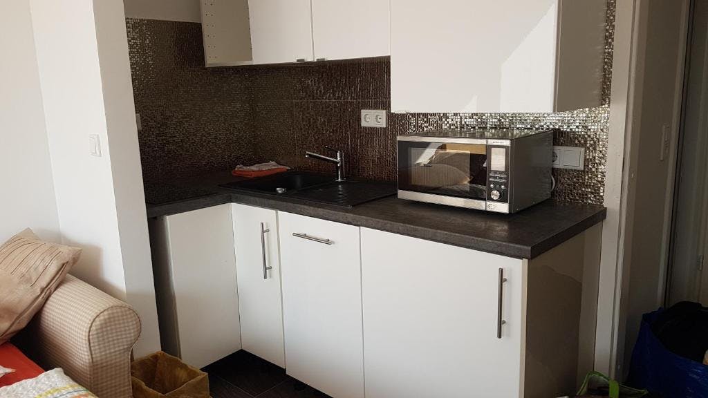 Nice 25 m2 apartment in a good location for up to 3 people (1 double bed or two single beds and a couch). Equipment: - dishwasher - washing machine - internet connection - hob - microwave oven - toaster - coffee maker - electric kettle - Bathroom with shower - Writing desk - wardrobe - TV Schickes 25 m2 großes Apartment in einer guten Lage für bis zu 3 Personen (1 Doppelbett, umbaubar in 2 Einzelbetten und ein Schlafsofa). Ausstattung: - Geschirrspülmaschine - Waschmaschine - Internet - Kochfeld - Mikrowelle - Toaster - Kaffeemaschine - Wasserkocher - Bad mit Dusche - Schreibtisch - Schrank - Fernseher