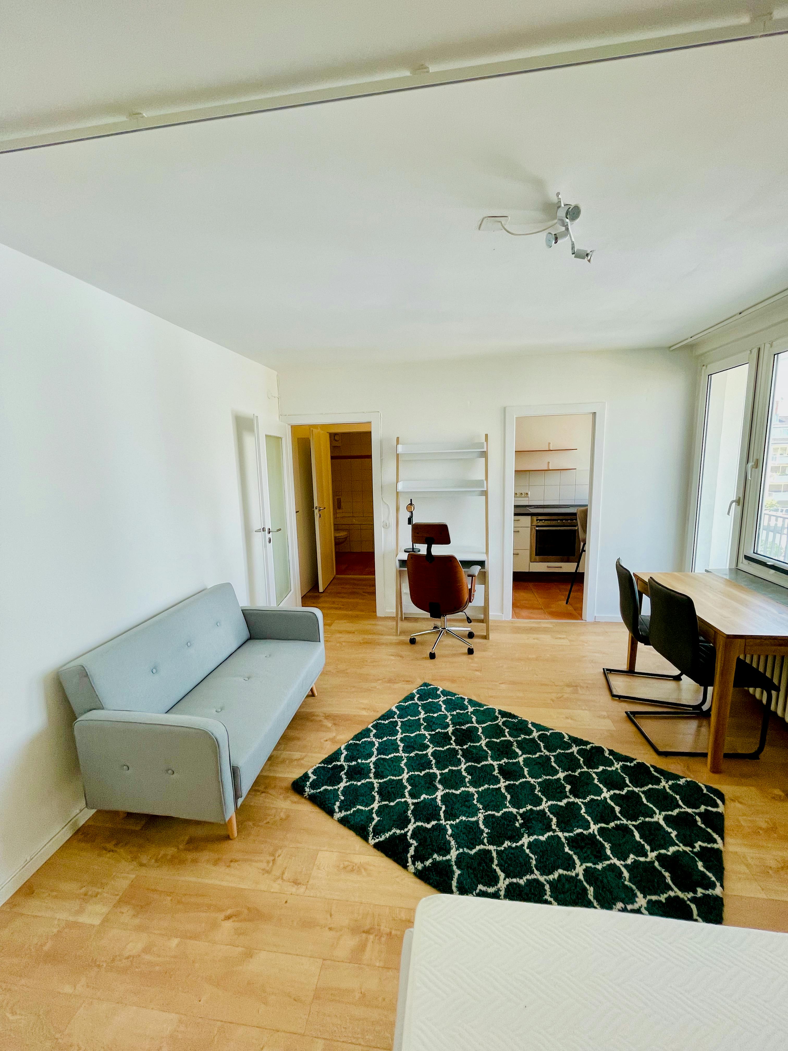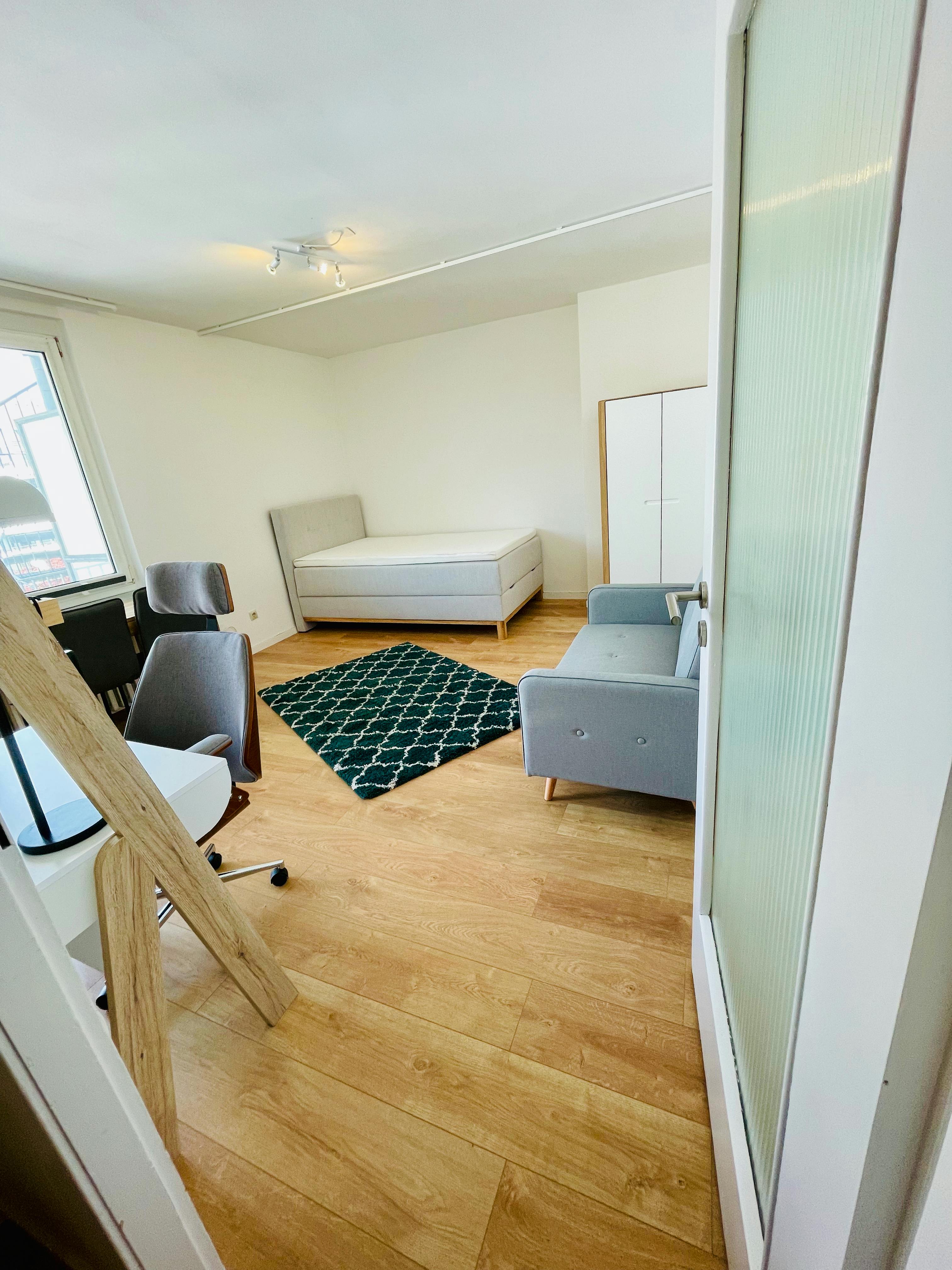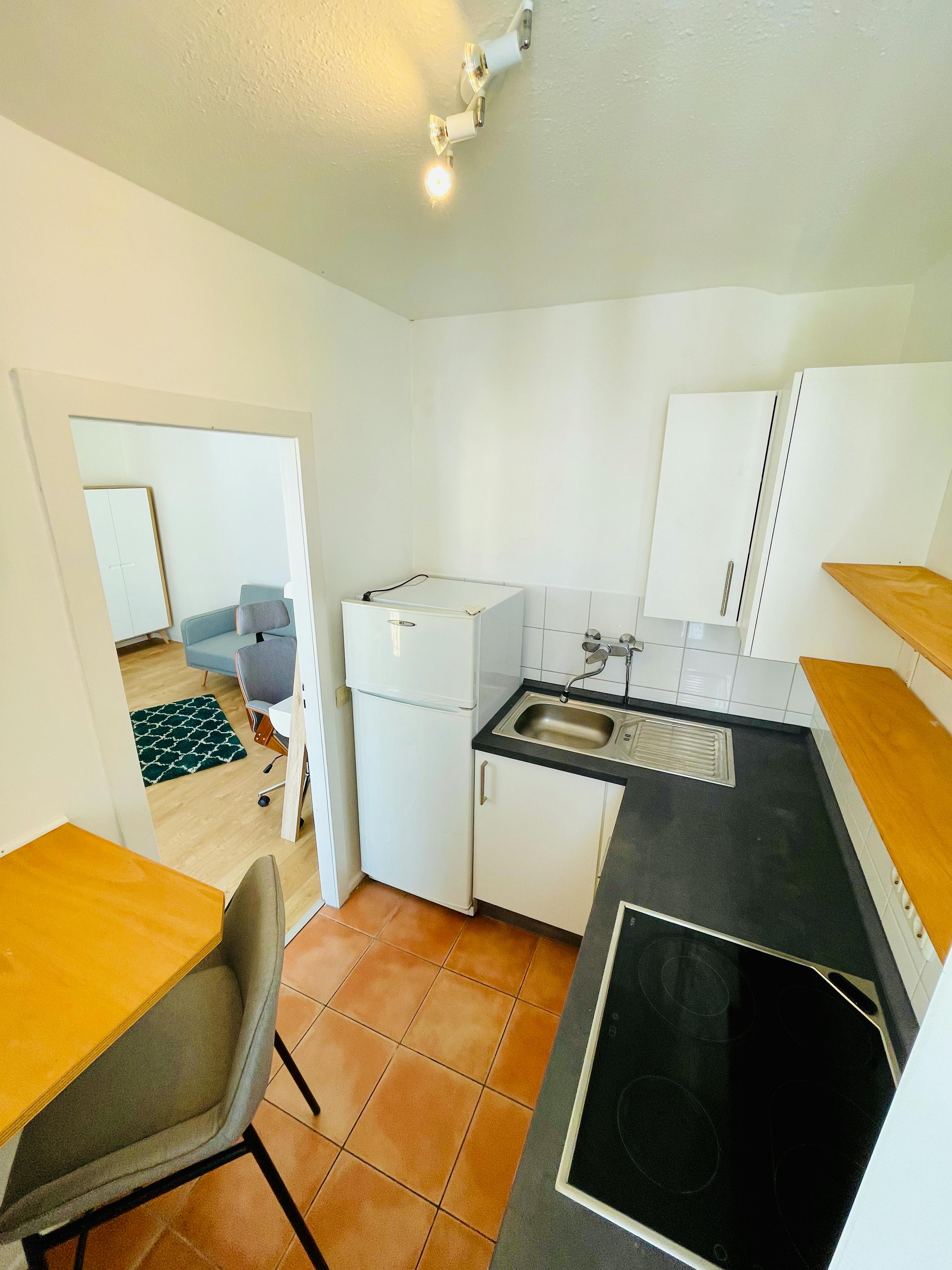 Beautiful 37 sqm apartment in the most beautiful and central location of Cologne. The apartment is located to the backyard and therefore very quiet and still bright. It has a great balcony with an even greater view. The fully equipped new kitchen is "ready to move in only with a suitcase" and includes a refrigerator, oven, ceramic hob, coffee maker and toaster, everything you need including a cozy sitting area for breakfast. In the living room and bedroom is a 1.40 m wide bed, a desk and a comfortable seating. The bright bathroom has a bathtub.