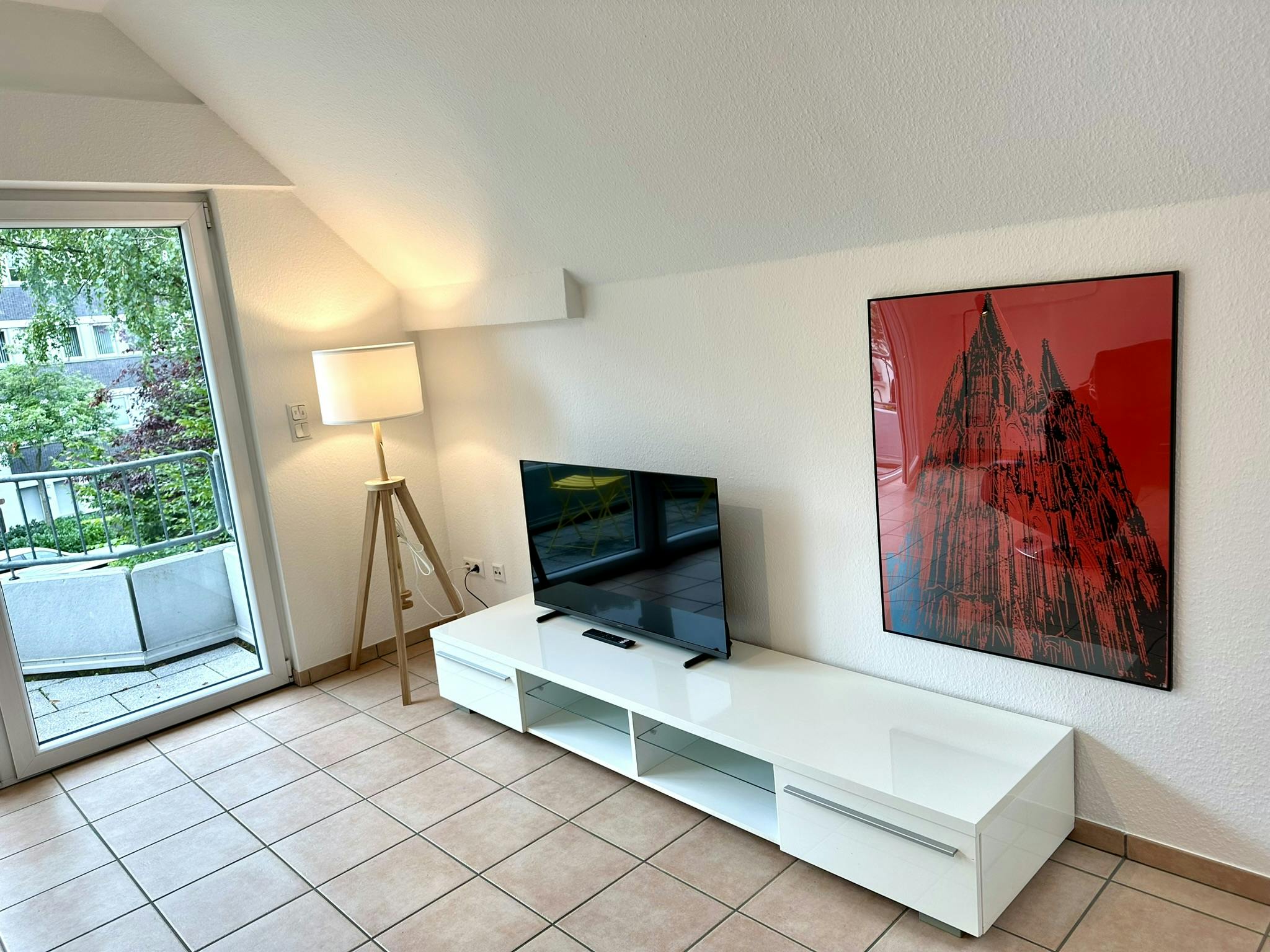 This modern flat is located in the in the villa district of the Agnesviertel, just a few minutes' walk from the Rhine. The nearest underground station, Reichensberger Platz, is only 200 metres away and offers perfect transport connections. A wide range of restaurants and cultural venues are within walking distance. The main railway station can be reached on foot in 15 minutes. You can reach the A3 / A4 motorways in just a few minutes via the Zoobrücke bridge. The rent includes a car parking space in a lockable garage directly at the building. The flat is located on the...