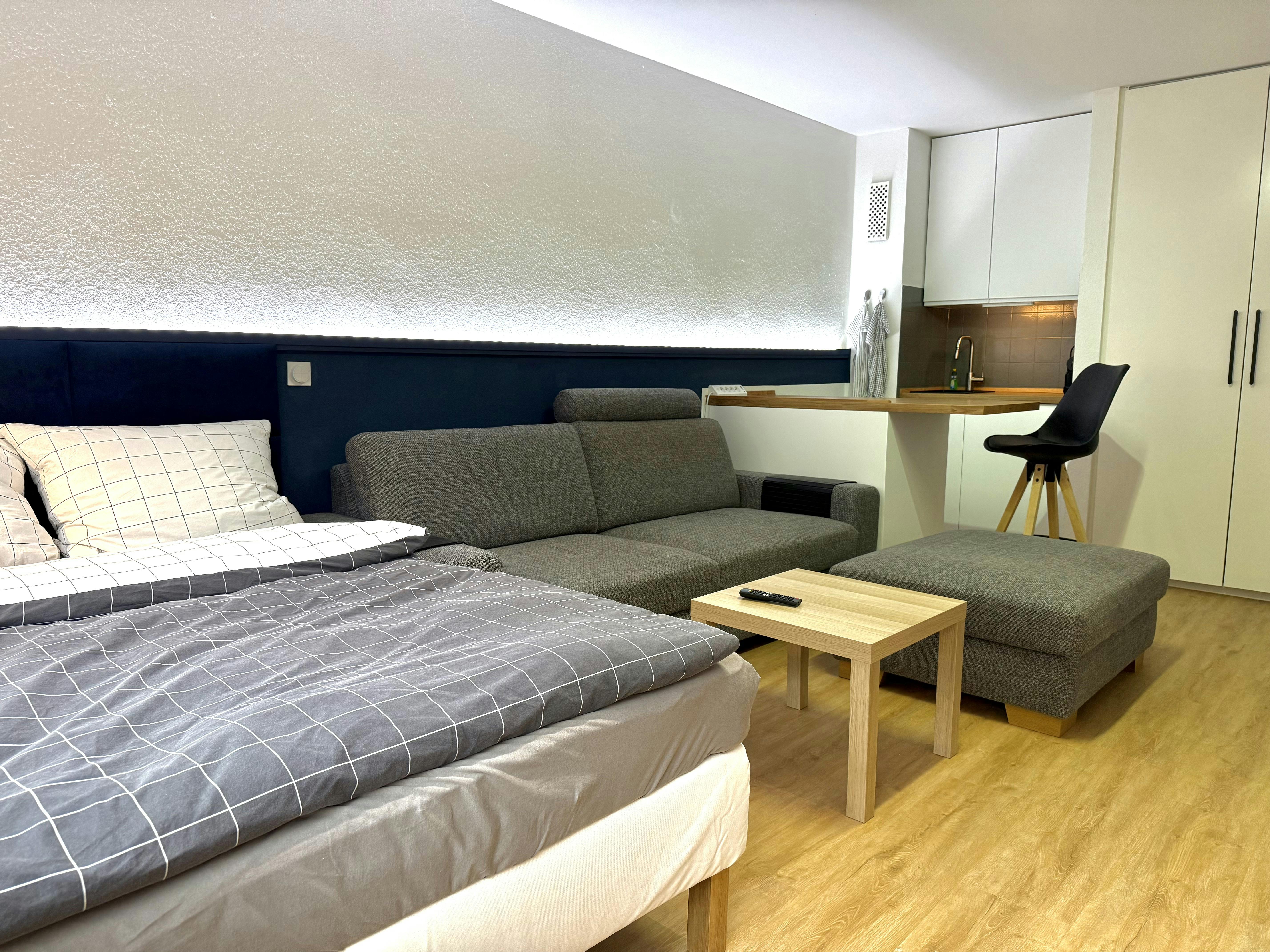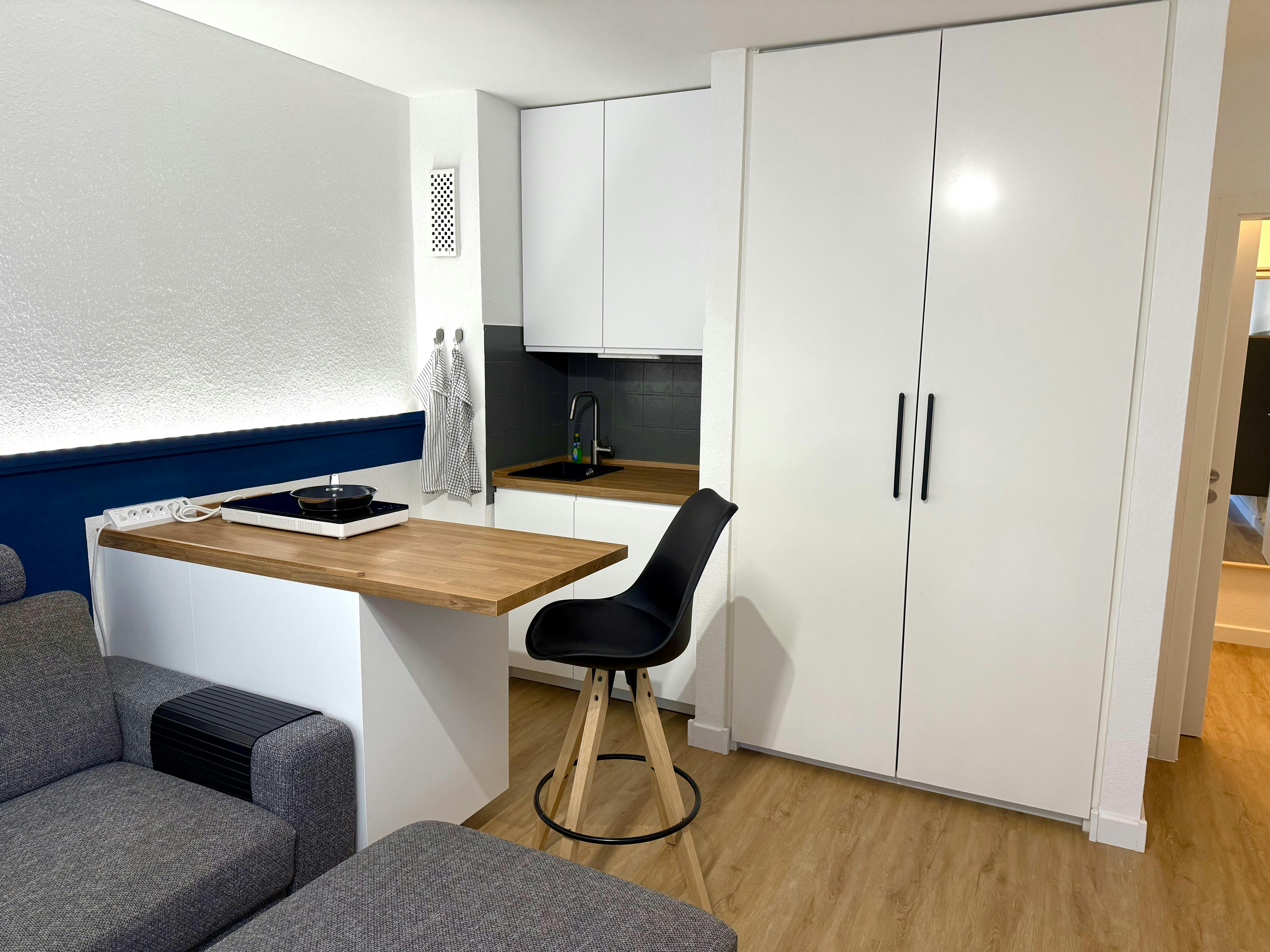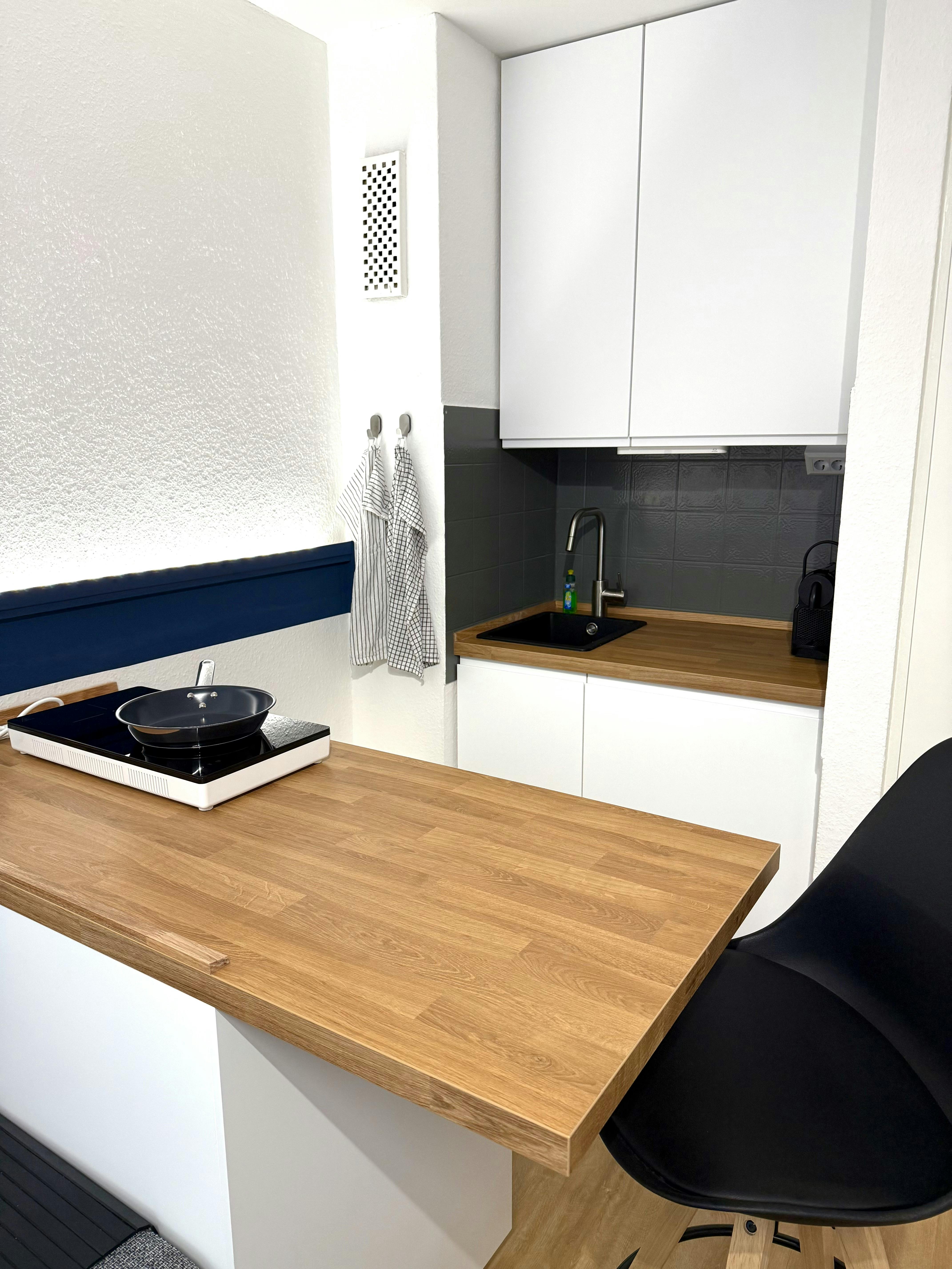 This one-room apartment in Cologne Mülheim offers modern living comfort on 32 sqm, located on the second floor of an apartment building and facing a quiet inner courtyard. The open layout combines living, sleeping, and kitchen areas, creating a spacious atmosphere. The high-quality fitted kitchen is equipped with an induction cooktop, a large dishwasher, and a Miele washing machine. Thanks to fast internet, the apartment is also ideal for home office or streaming. The location is great due to its proximity to the Rhine, which is just 200 meters away and perfect for relaxing walks or sporting activities. Wienerplatz, with...