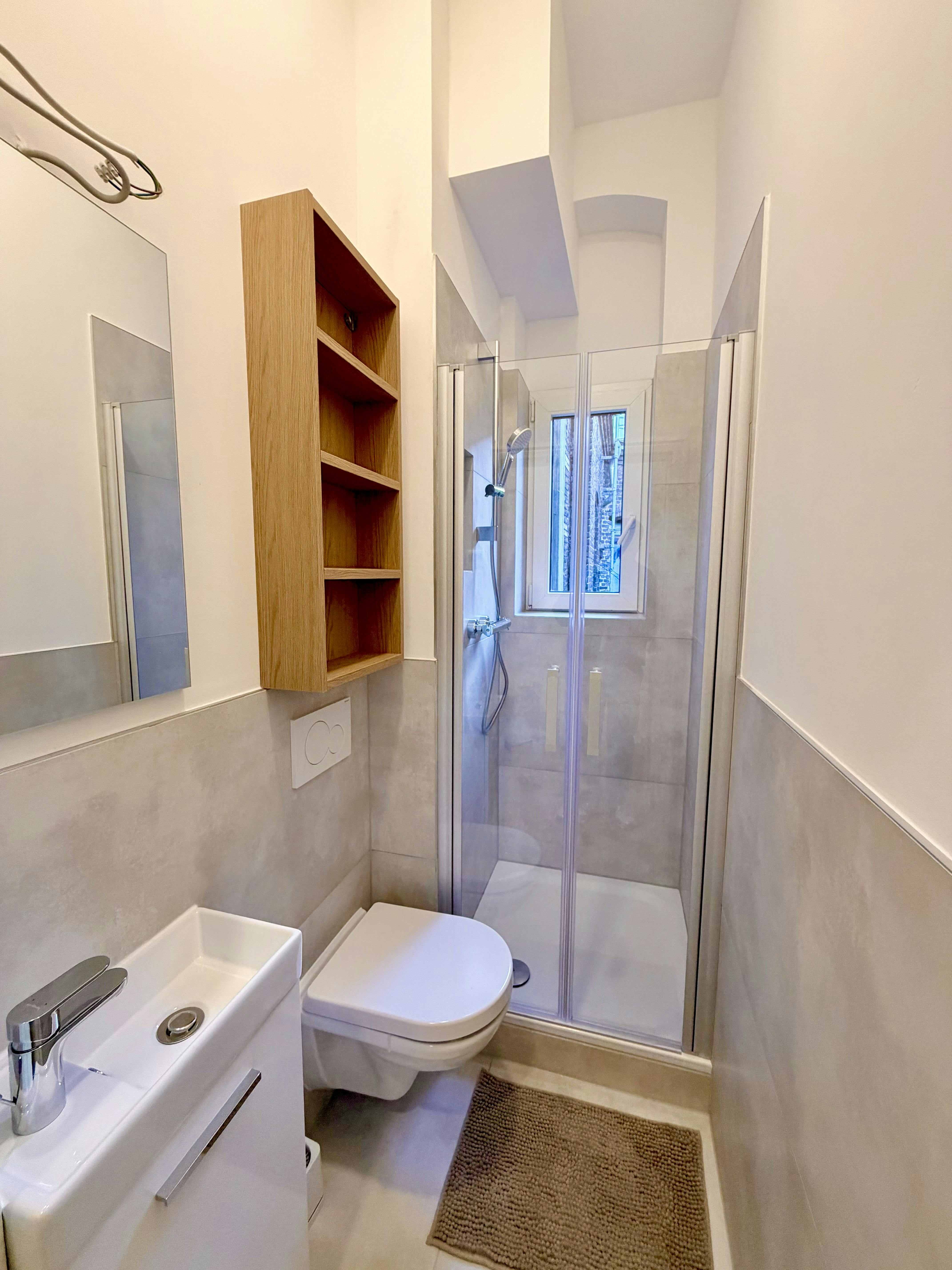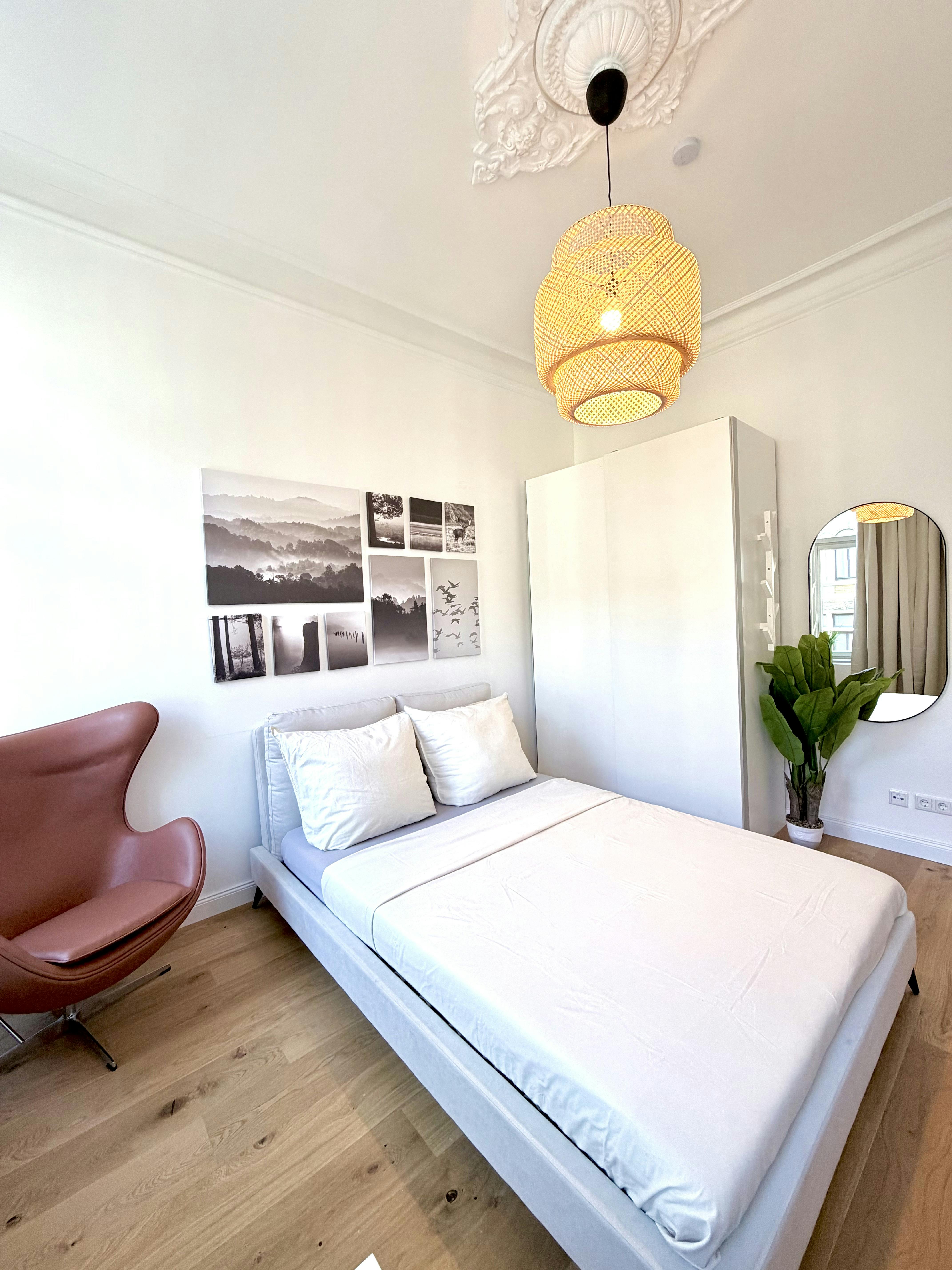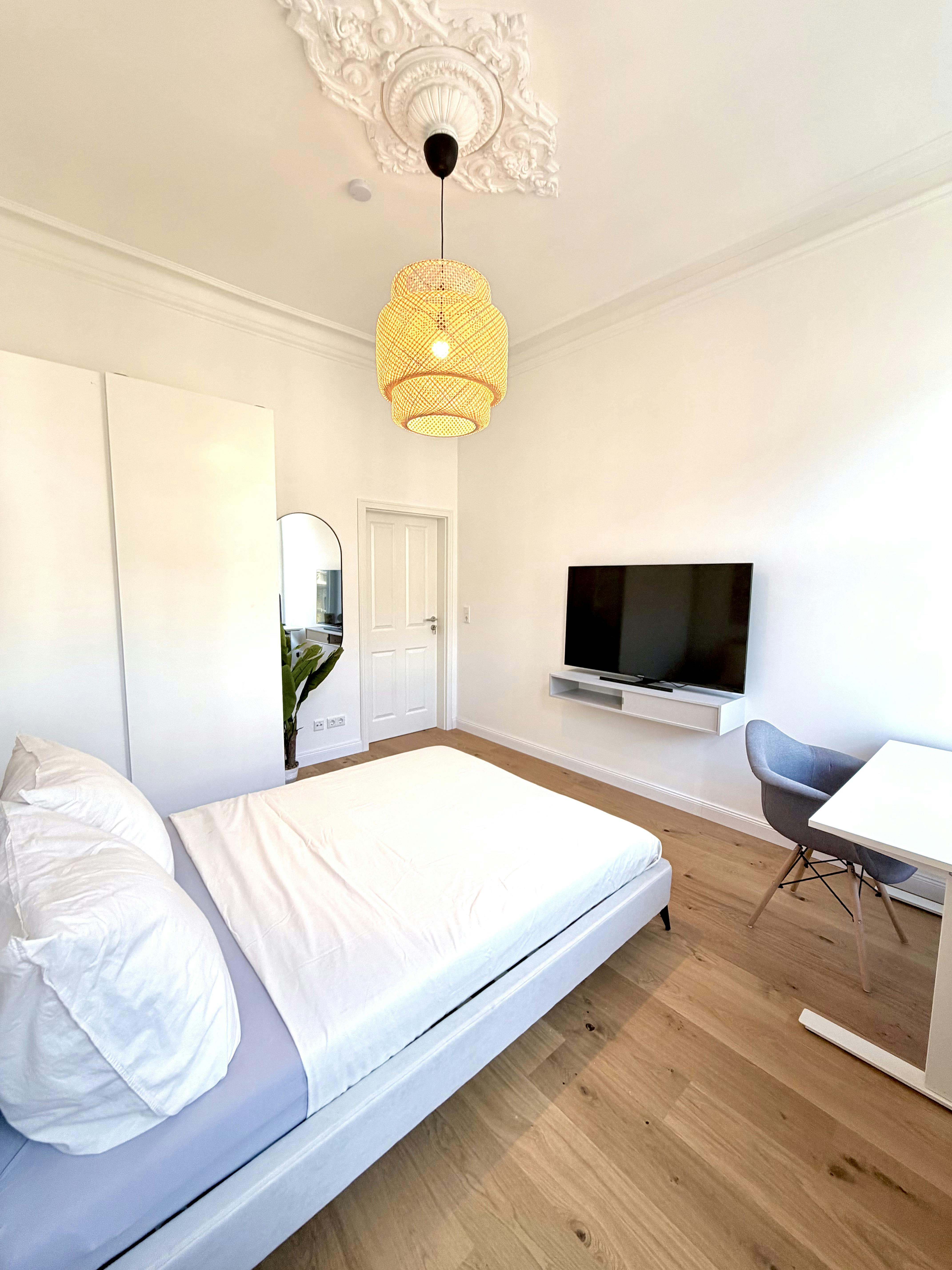 Welcome to your new, light-flooded shared room on the street side! This spacious room offers you plenty of space and is characterized by high ceilings and large windows, as it is an old building apartment. This room is labeled “b” and can be seen in the floor plan. The room is part of a newly formed 5-person shared flat in a renovated apartment. You benefit from two modern and freshly renovated bathrooms, each equipped with a shower and a toilet. This makes the morning routine pleasant and stress-free. A particular advantage of this offer is that the rent already includes all utilities...