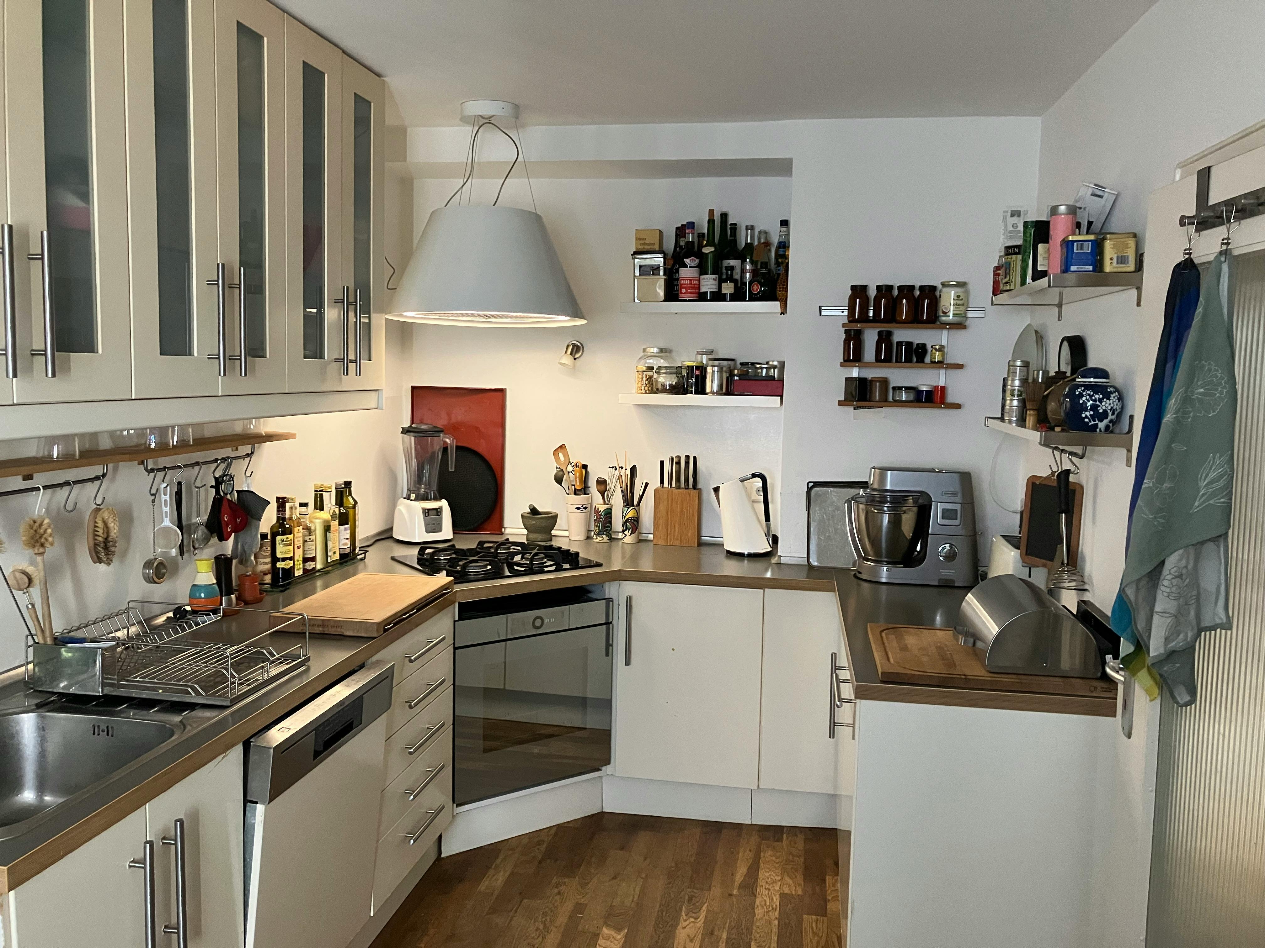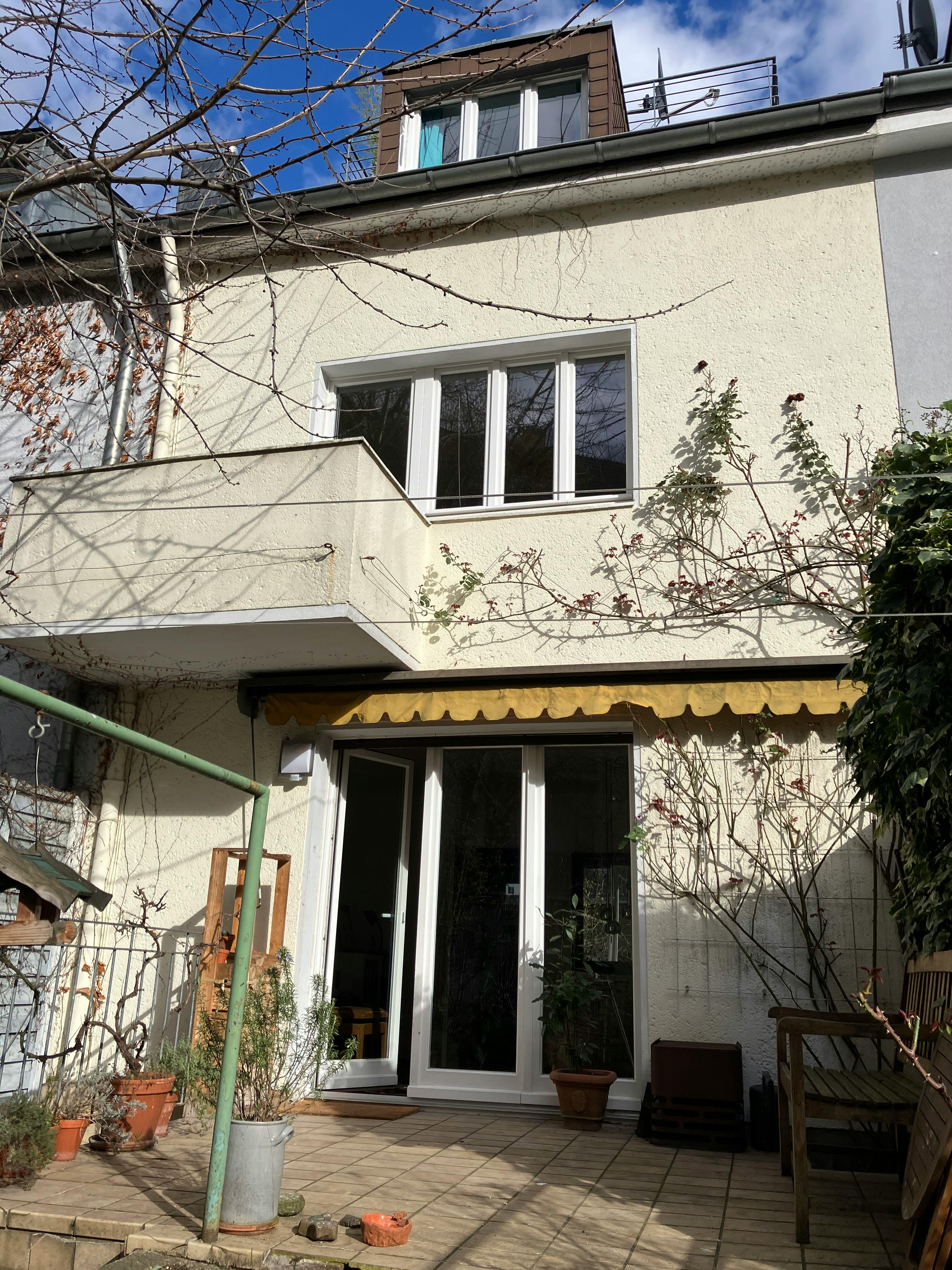 Kleines Stadthaus im Herzen Kölns Wohnen auf drei Etagen und zwei sonnigen Terrassen - mitten in der Stadt und trotzdem absolut ruhig. Das Haus befindet sich nahe Neumarkt in einer Anwohnerstraße mit netter Nachbarschaft und optimaler Nahverkehrsanbindung. Das Stadthaus ist liebevoll saniert mit Holzböden, viel Licht und Charme. Es hat 4 geräumige Zimmer und 2 Bäder (davon eines mit Badewanne), einen kleinen Garten mit Terrasse und eine Dachterrasse, eine voll ausgestattete Küche mit Dampfgarofen und Spülmaschine. Waschmaschine und Trockner befinden sich im Keller. Ideal für eine Familie mit Kindern: Es gibt ein Schlafzimmer mit Doppelbett, ein großes Jugendzimmer...