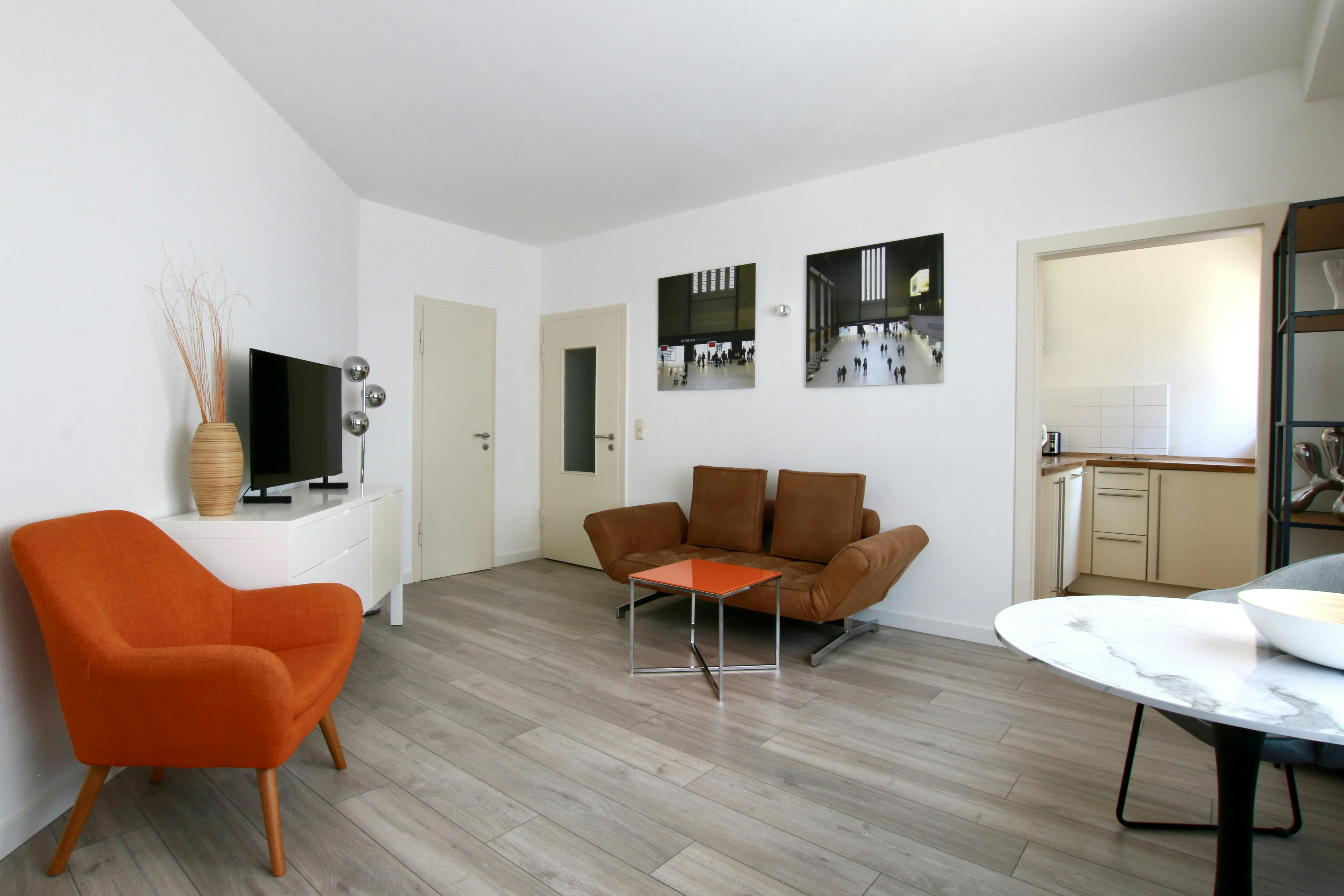 Modern apartment centrally located near Friesenplatz The 36 sqm apartment is modern and comfortable furnished. There is a new kingsize bed (1,80 m x 2m). It has a fully equipped kitchen with refrigerator, hob, microwave, coffee maker and a kettle. It has a small bath with a bathtub. Hairdryer, towels and bed lining are provided. A TV and free WiFi are included. We also offer an optional extra cleaning, linen and towel service for € 66,00 per week. The Belgian quarter is situated in the heart of Cologne. The apartment enjoys an excellent location for both business travellers and holiday makers. This ideal...