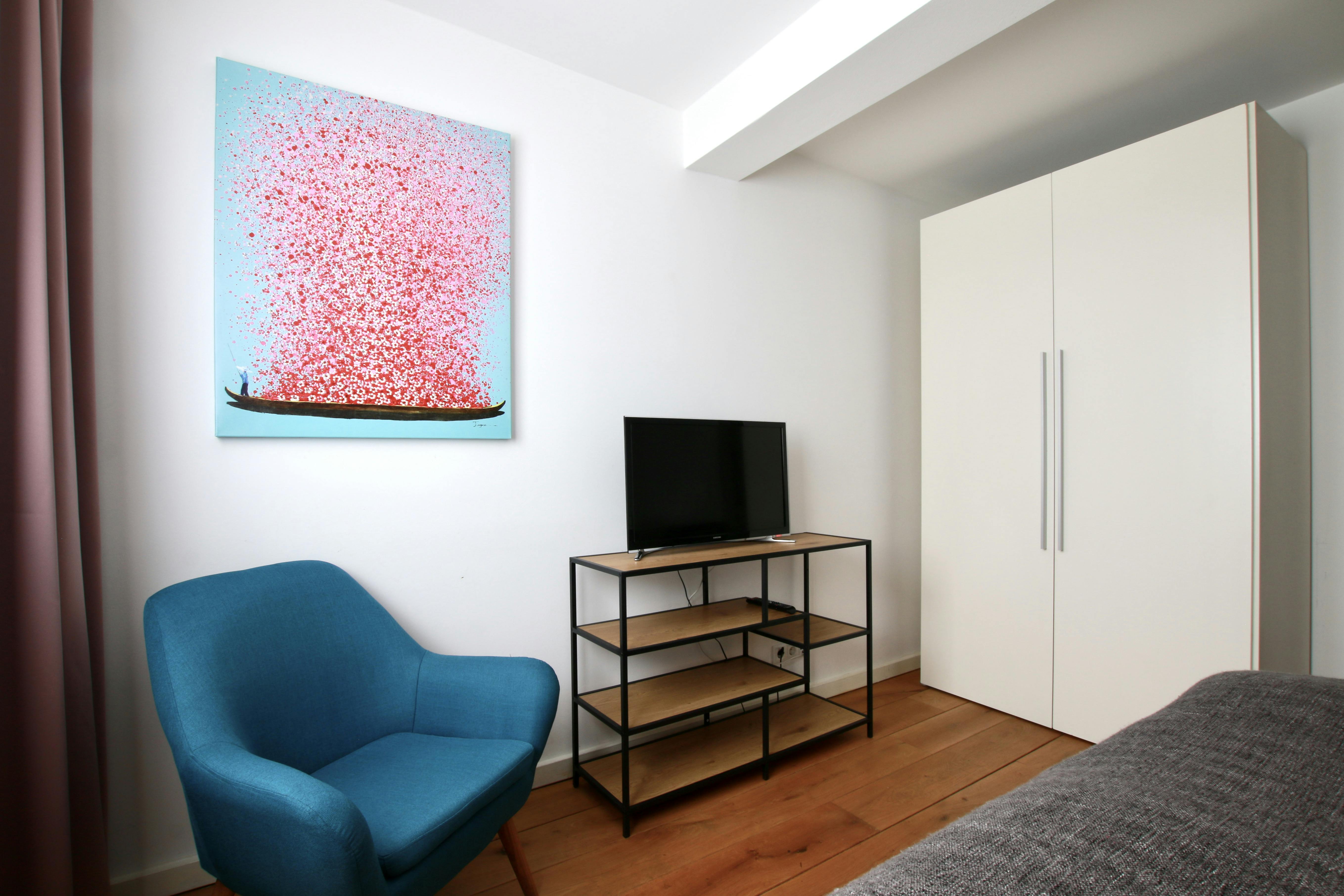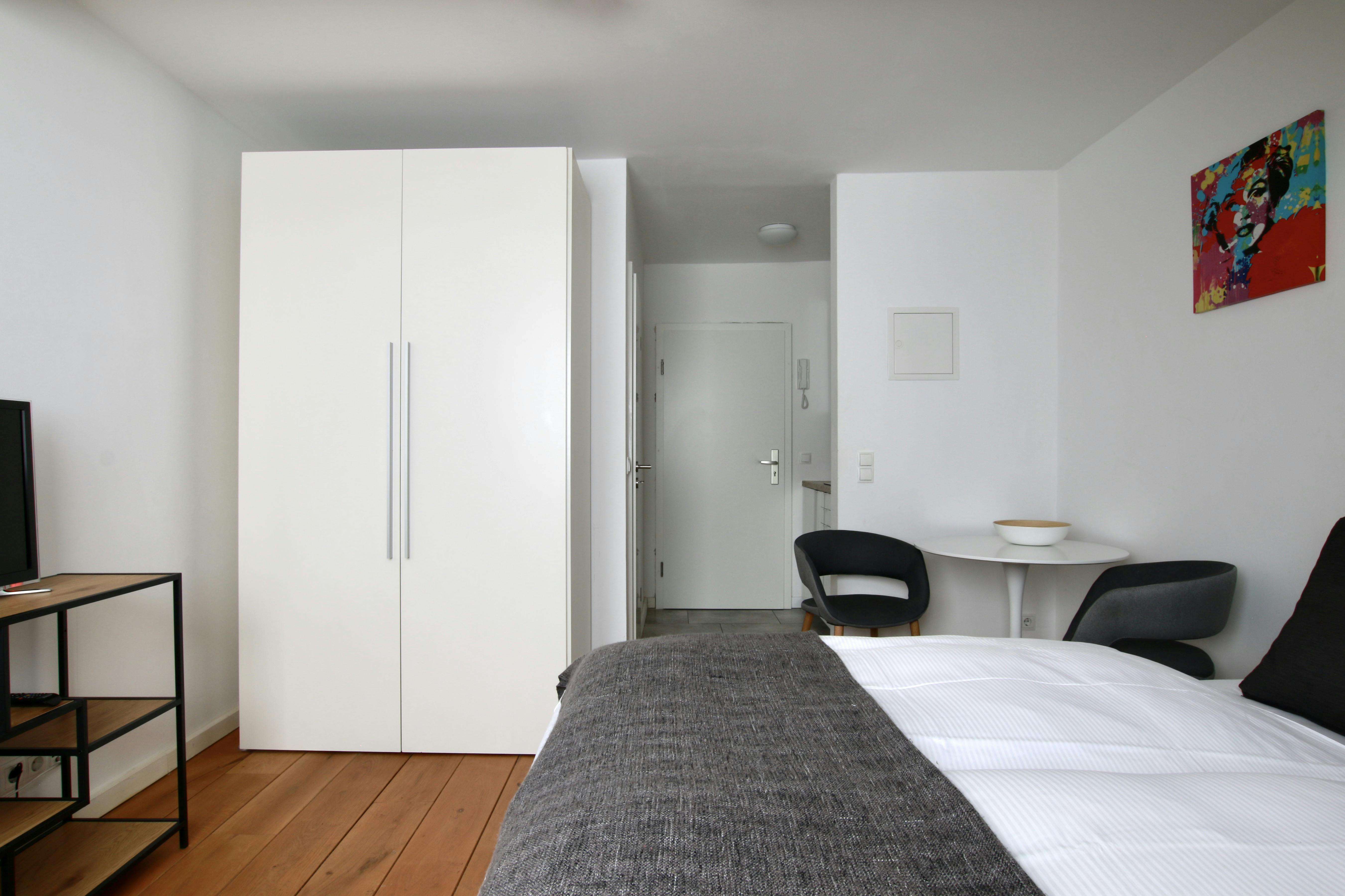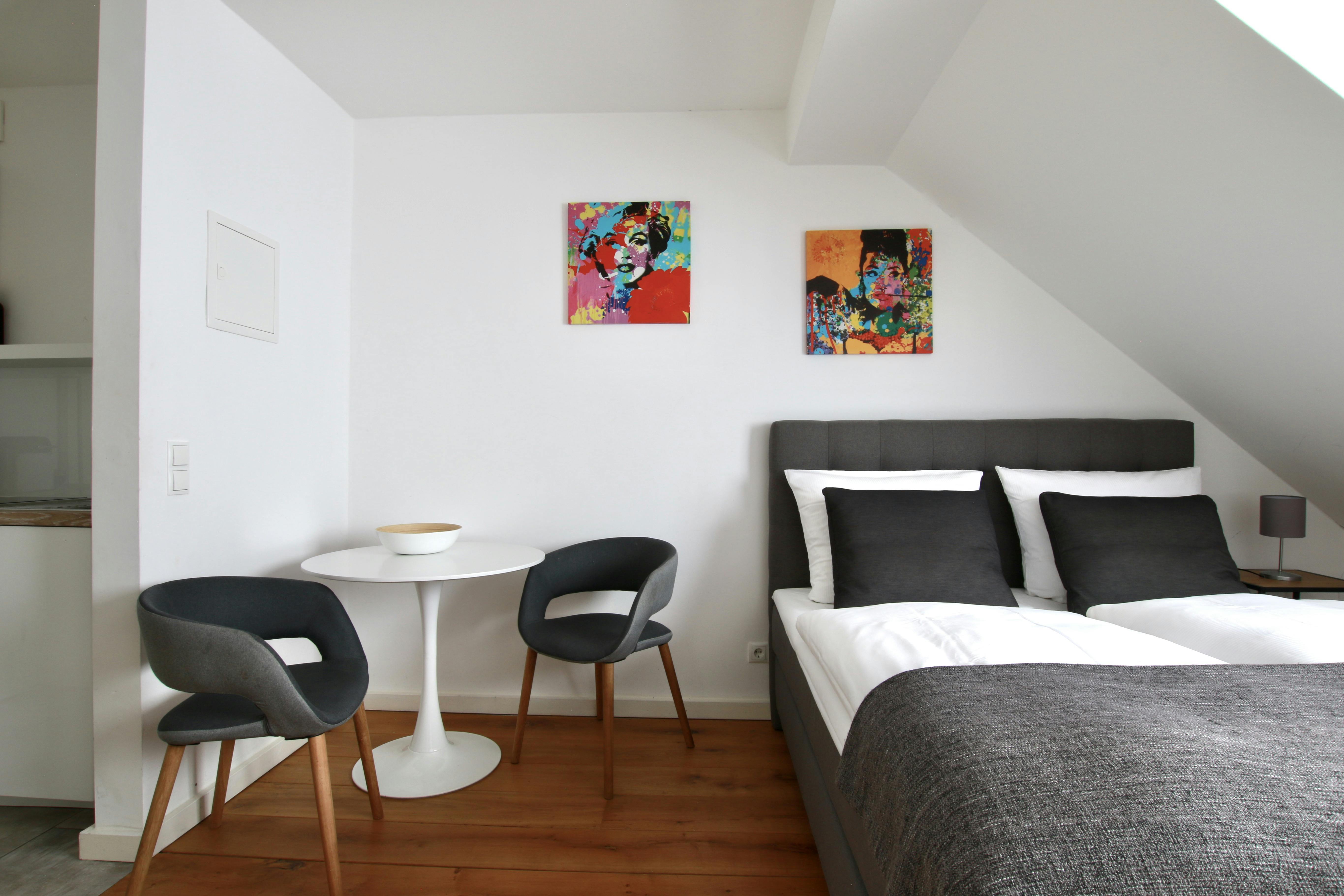 Gemütliches Dachgeschoss Apartment im belgischen Viertel Das 26 qm Apartment ist gemütlich und modern eingerichtet. Es verfügt über ein bequemes queen size Boxspringbett (1,60 x 2m), einen kleinen Tisch mit zwei Stühlen, eine Küchenzeile mit Kühlschrank, Kochfeld, Kaffeemaschine und einem Wasserkocher. Das Bad ist mit einer einer Dusche ausgestattet. Fön, Handtücher und Bettwäsche sind auch vorhanden. Ein Fernseher und kostenloses Wlan stehen auch zur Verfügung. Auf Wunsch ist ein wöchentlicher Putz-, Handtuch- und Bettwäscheservice für € 48,00 pro Woche möglich. Das Apartment liegt im modernen Zentrum Kölns im beliebten Belgischen Viertel. Das Viertel bietet alles was man von Köln erwarten kann: von traditionellen Brauhäusern...