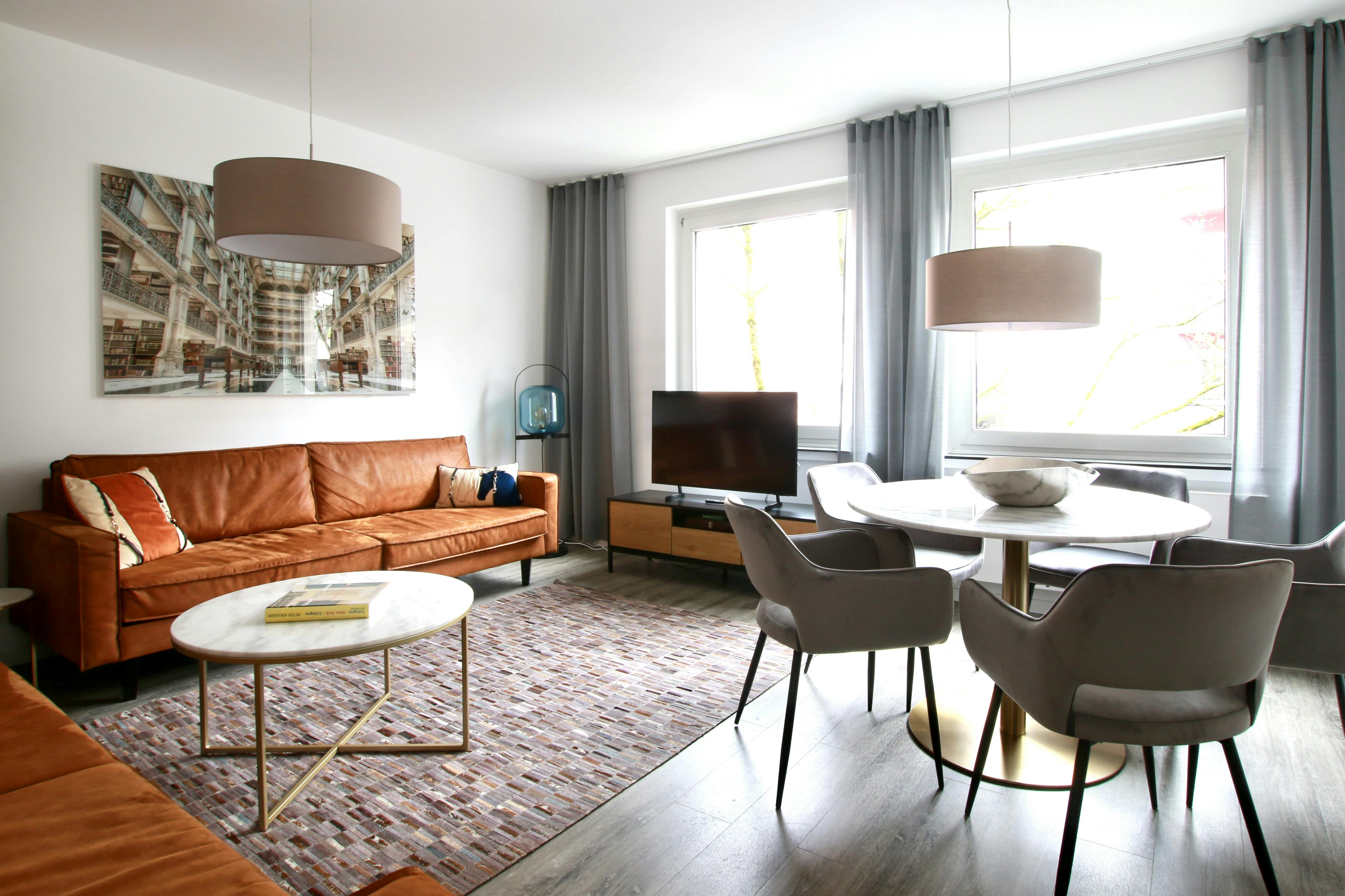 Großzügige Wohnung im Belgischen Viertel Die 68 qm Wohnung ist stilvoll und komfortabel eingerichtet. Sie verfügt über zwei Schlafzimmern jeweils mit einem bequemen king size Boxspringbett (1,80 x 2m). Es gibt eine voll ausgestattete Küche inklusive Kühlschrank, Herd, Backofen, Spülmaschine, Wasserkocher und Kaffeemaschine. Im Wohnzimmer gibt es einen Esstisch und ein großes Sofa, wo man schön entspannen kann. Auf Wunsch ist ein wöchentlicher Putz-, Handtuch- und Bettwäscheservice für € 98,00 pro Woche möglich. Das Apartment liegt im modernen Zentrum Kölns im beliebten Belgischen Viertel. Das Viertel bietet in unmittelbarer Nähe alles was man von Köln erwarten kann: vom traditionellen Brauhaus und exquisiten Restaurants bis...